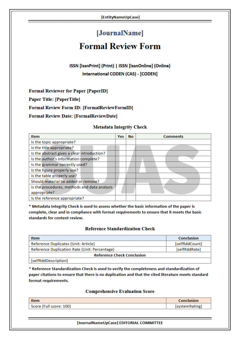 SUAS Journal has now officially launched an automated manuscript form review mechanism, which aims to standardize and improve the efficiency of the review process. The mechanism can generate a form detection report for each manuscript to ensure that the manuscript…